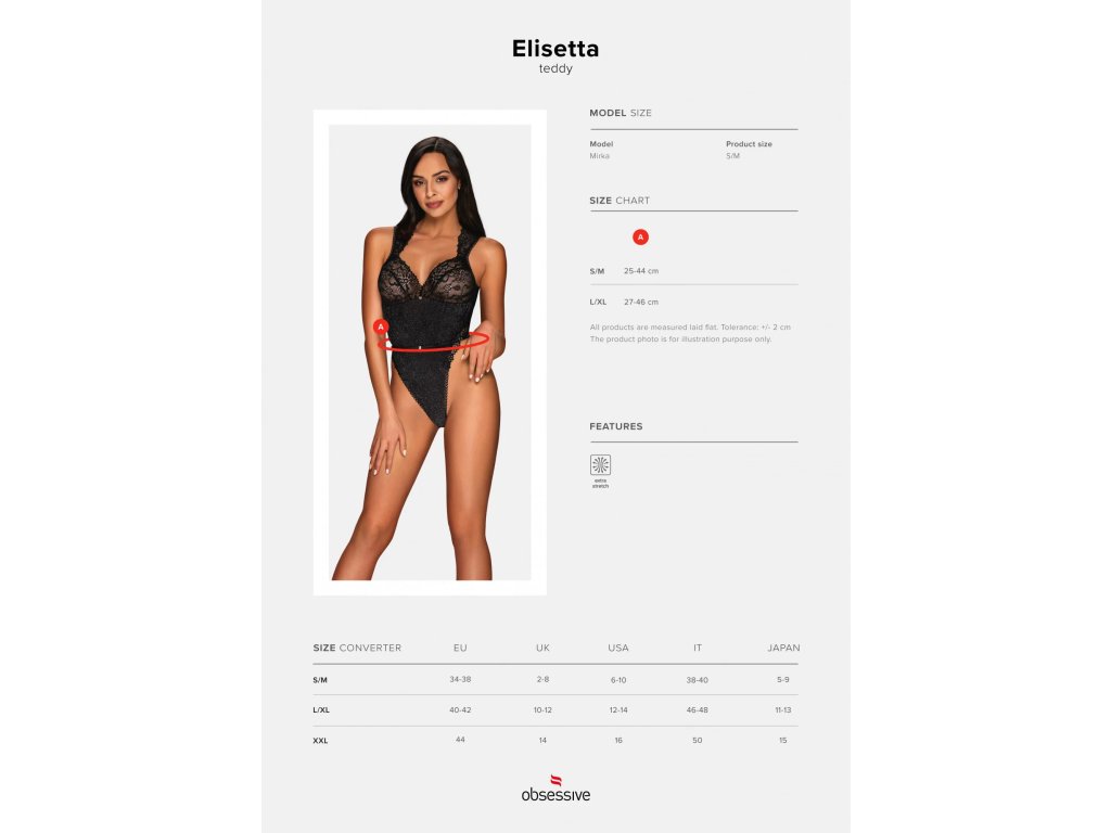 Elisetta teddySníte o francouzské eleganci a perfektním designu? Pak si dopřejte trochu (a možná i trochu víc) květinové krajky a svůdného třpytu. Už víte, co pro vás máme? V novém teddy Elisetta se budete cítit božsky a zjistíte, že v klasické černé vypadáte vždy úžasně! Stačí chvilka a bude vaše...