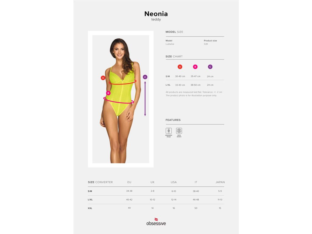 Neonia teddyBude to wow efekt! Teddy Neonia je všechno, jen ne obyčejný nebo průměrný. Víme, že máte chuť na krásně zvýrazněné poprsí, zdůrazněná záda a jemnou dávku lesku mezi prsy. Neonové fantazie brzy vstoupí do vaší ložnice...