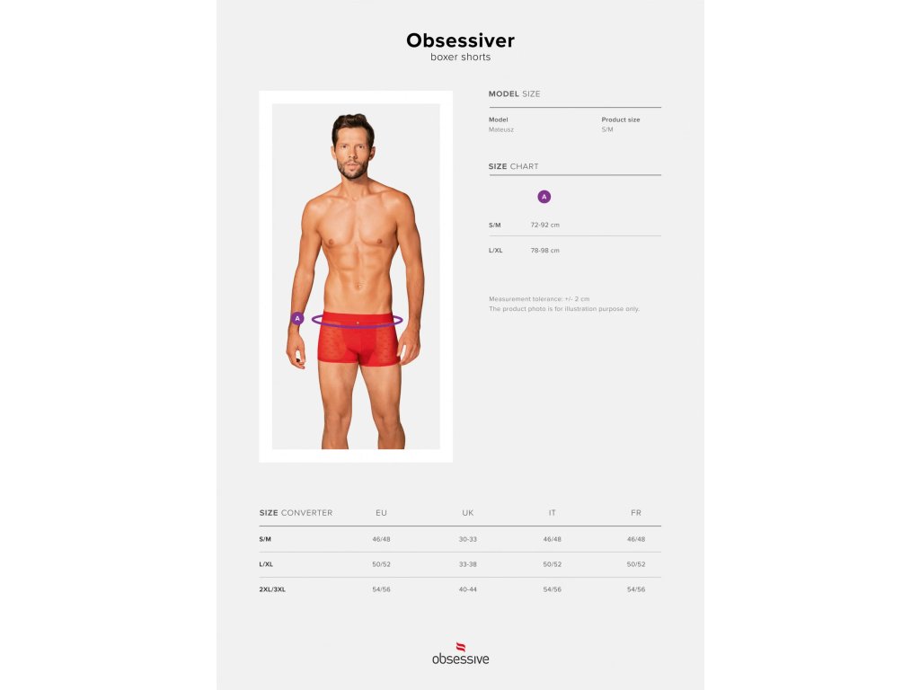 Pánské boxerky ObsessiverŠťavnatě červené a mimořádně sexy střih těchto boxerek z kolekce Obsessiver jsou dokonalým společníkem na cestě k naplnění nemravných ložnicových tužeb! Sexy vzhled a pohodlí jdou ruku v ruce a sebevědomě vykračují vstříc rozkoši. Máte chuť na vysokou dávku testosteronu? Ta je součástí balení!