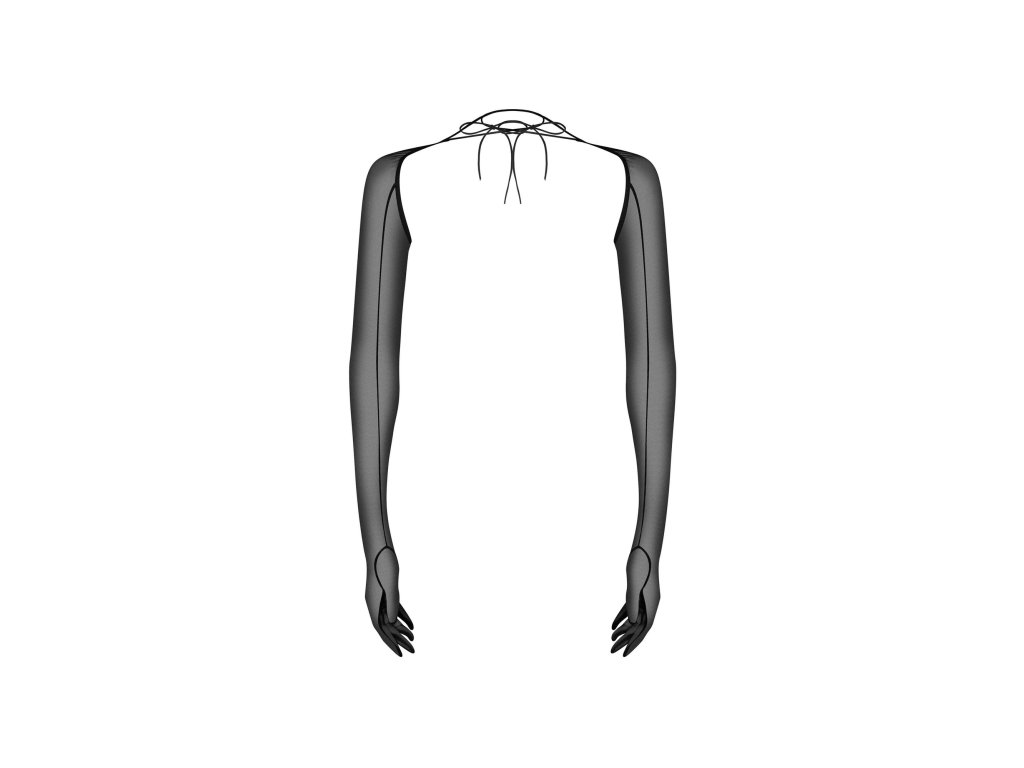 Smyslnost začíná gestem. Dlouhé rukavice Euphori jsou jedinečným doplňkem, který podtrhuje ženskou sílu a eleganci. Jsou vyrobeny z pružné, poloprůsvitné látky, která jemně obepíná paže jako druhá kůže a zdůrazňuje každý pohyb a dotek. Jejich charakteristický vzhled dotváří jemná mašle u krku – tenké pásky, které si můžete upravit podle svých představ. Tyto rukavice jsou více než jen doplňkem – jsou pozvánkou k navození nálady, vytvoření atmosféry a vyjádření sebe sama. Lze je kombinovat s ramínky podprsenky, body nebo korzetem pro soudržný, promyšlený vzhled. Jsou perfektním doplňkem vašeho večerního outfitu – upoutají pozornost i myšlenky.- dlouhé rukavice sahající až k ramenům