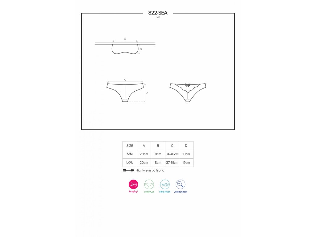822-SEA-3Získejte tento speciální set a buďte opatrní při otevírání krabice! Přináší velmi zběsilé fantazie! Oblečte si sexy kalhotky, zakryjte oči frivolní maskou a ... začněte tu pikantní hru mezi vámi a partnerem! Pravidla? Nepotřebujete je. Buďte spontánní!