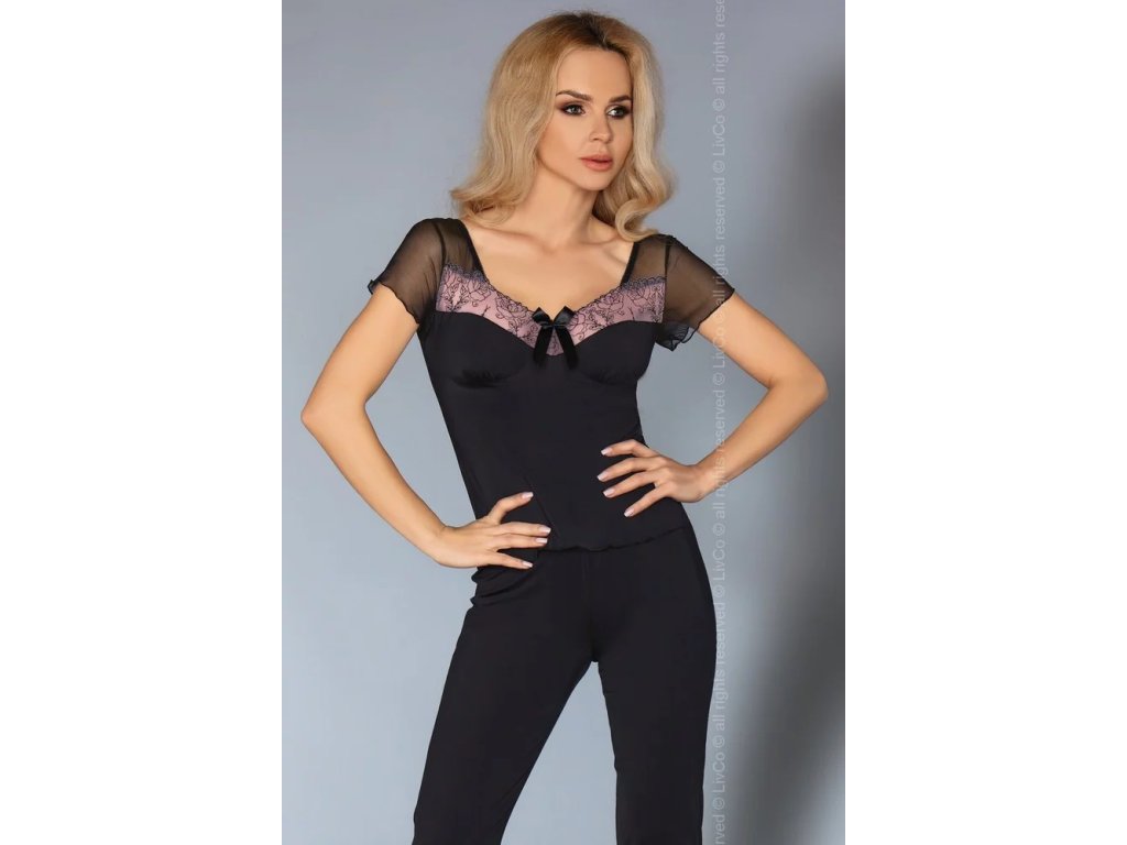 Perfektní komplet DorothyDvoudílný komplet složený z kalhot a halenky. Halenka se síťovými rukávy, výstřih zdobený vyšívanou krajkou a mašličkou. Kalhoty v 7/8 délce, v pase na gumu, délka kalhot zakončena krajkou. Komplet vhodný jako pyžamo, tak i domácí komplet.