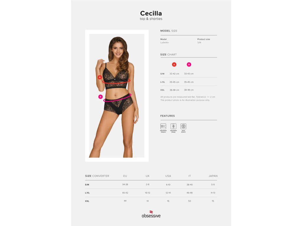 Cecilla top & shortiesRáda nosíte sexy spodní prádlo, které zahřeje atmosféru? Pak si zamilujete tyto krajkové zázraky! Díky mimořádně smyslnému střihu se budete cítit frivolně a velmi žensky. Budete vypadat opravdu rozkošně a krásně, a zároveň jemně a decentně. Nový komplet Cecilla vám zaručí dokonale zvýrazněné tvary, zdůrazněné poprsí a svůdný pas!