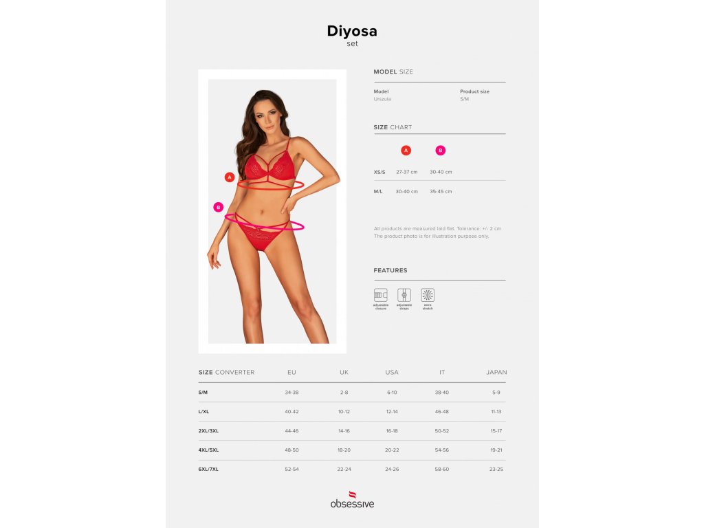 Máte rádi dokonalou symetrii? Tento svůdný set pomůže vaší vášni najít se ve zlatém poměru. Intenzivní červená barva na vás upoutá partnerův pohled a jemné průstřihy a průsvitný materiál podnítí vaši fantazii a vyzvou ho k objevování tajných míst na vašem těle. V tomto prádle se budete cítit jako bohyně!