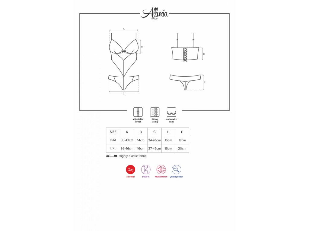 Teddy AlluriaSexy krajka v super-novém designu? Dnes večer budete nejúžasnějším divem, který ještě nikdy neviděl! Chcete vidět opravdové vzrušení v jeho očích? Oblečte si Alluria Teddy! A pak ... ať zatáhne za saténovou stuhu na zádech, aby vás rozbalil. Bavte se!