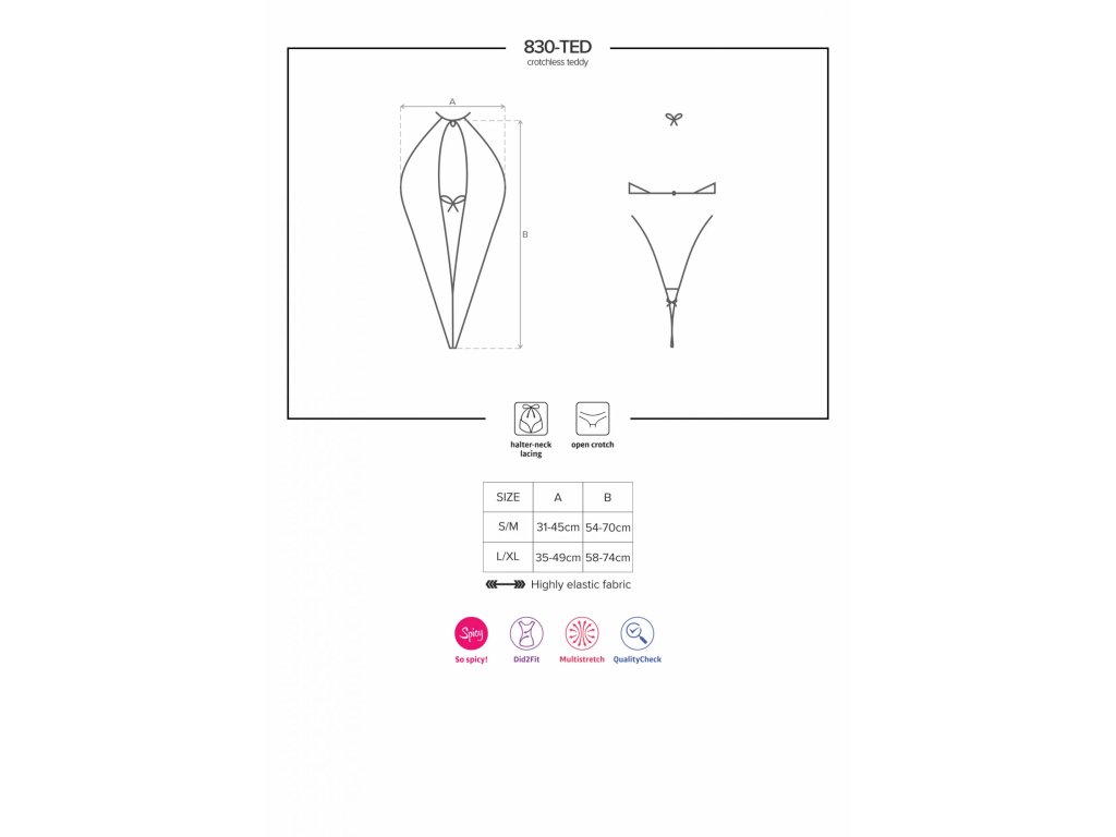 830-TED-1Okořeňte svůj vzhled tímto sexy zajímavým Teddy! Svůdný, odhalený předek a odkrytá záda - bude na vás okouzlující pohled! Přicházejí pikantní okamžiky. Přicházejí k vám a vašemu partnerovi! Připraveni? Poškádlete se navzájem a prožijte opravdu příjemný čas společně!