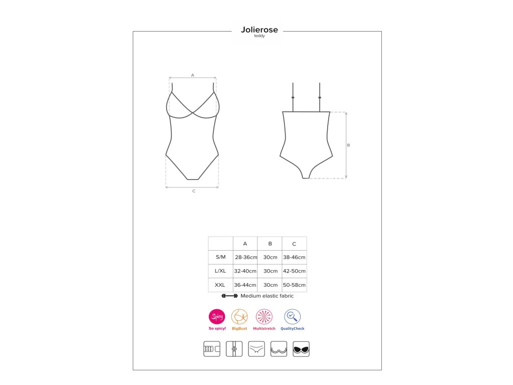 Jolierose teddySvůdná a sexy? Ano, samozřejmě! Nepotřebujete zvláštní příležitost inspirovat vás a partnera k sexy hrátkám. Jolierose teddy je perfektní kombinací krásy a pikantnosti. Nečekejte - získejte ho ještě dnes a dopřejte si spoustu úžasných okamžiků ve vaší ložnici!