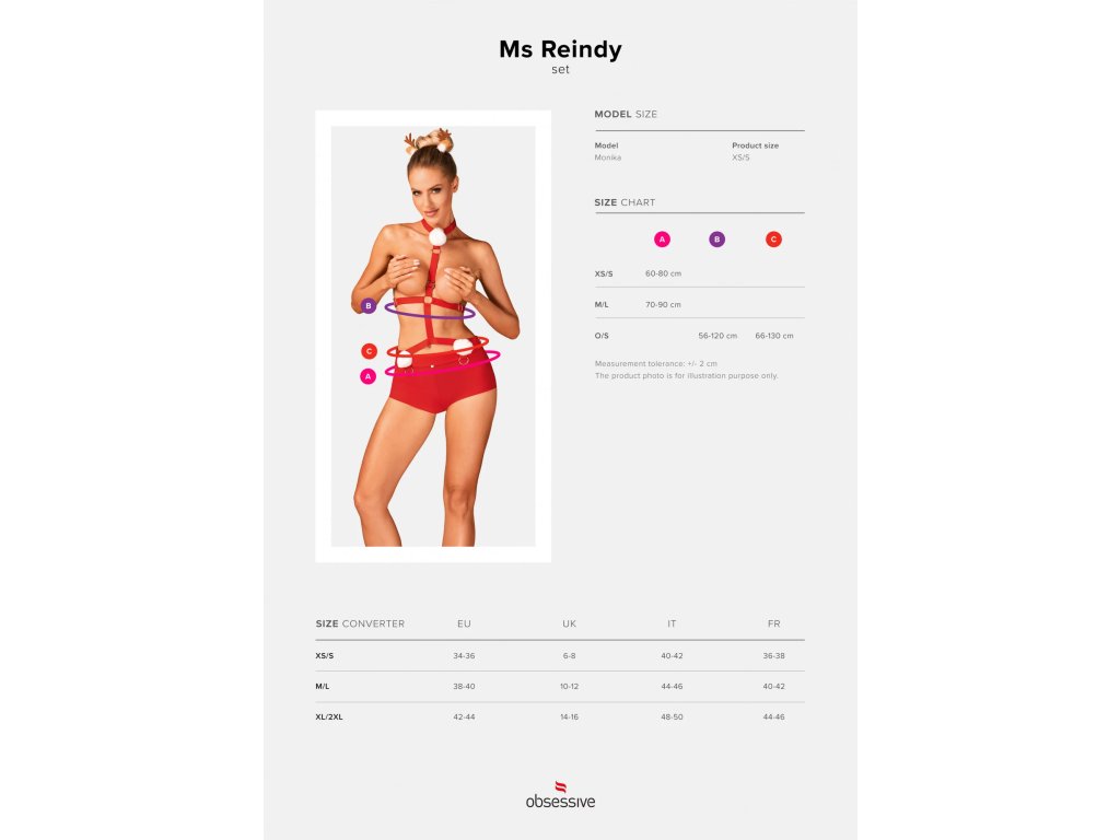 Kostým Ms ReindySmyslná paní Reindy ví, jak zvýšit teplotu zimního večera! Tato sexy souprava zaručuje příjemné chvíle s vaší drahou polovičkou. Svůdný střih a mimořádně pikantní prvky - postroj, kalhotky a frivolní čelenka s oušky, společně vytvářejí hravý outfit ve sváteční atmosféře.