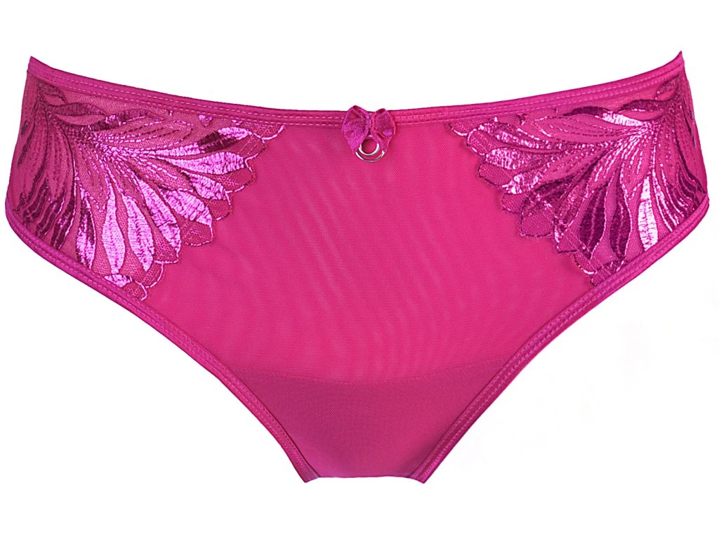 Okouzlující fuchsiové kalhotky V-10263. Vyrobené výhradně z jemného tylu, zakončené poutavou třpytivou výšivkou, jsou kombinací klasického a inovativního designu. Jsou tak elegantní, že byste si je ráda nechala na zvláštní příležitosti, a zároveň tak svůdné a pohodlné, že jim neodoláte! V kompletu s push-up podprsenkou V-10261.Složení materiálu: Polyamid 84 %, bavlna 6 %, polyester 6 %, elastan 4 %