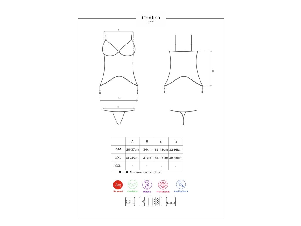 Korzet ConticaPředstavujeme sexy korzet Contica. Zdůrazněné tvary vám dodají sebevědomí a naladí na zlobivé potěšení! Jemný materiál ze síťoviny upoutá pozornost a krásně obepne vaše tělo. Nikdo nemůže odolat takovému drahokamu, a co vy?