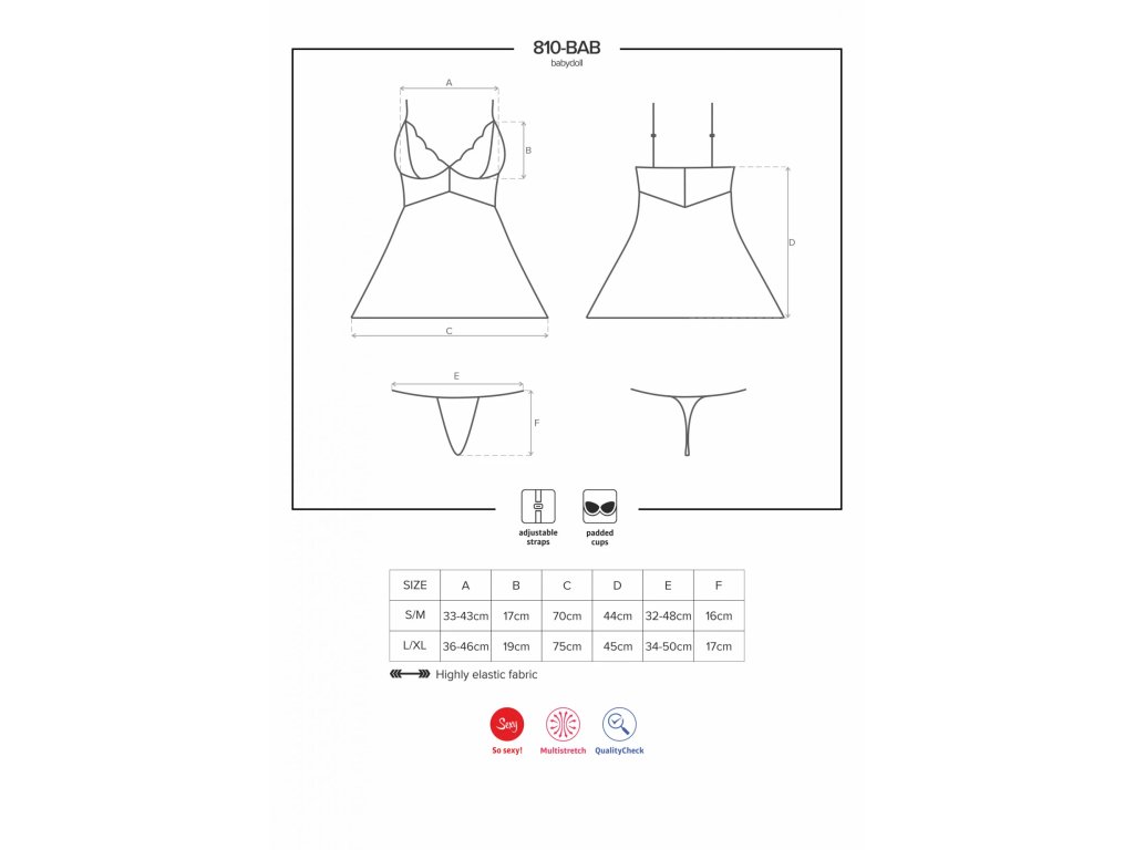 810-BAB-1Koketní, ženská a svůdná. Bude to perfektní volba! Podívejte se na její krásnou barvu a představte si jemnou látku dotýkající se vaší pokožky. Úžasné, že? Už nečekejte. Nechte tuto babydoll, aby vám splnila, o čem jste snívali!