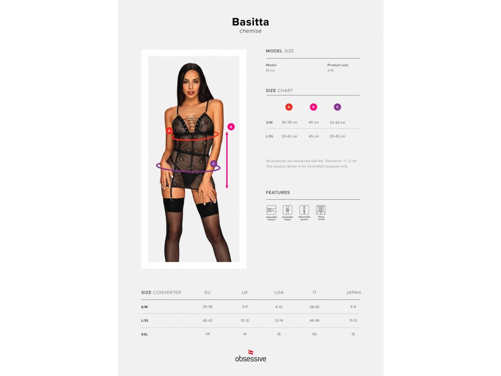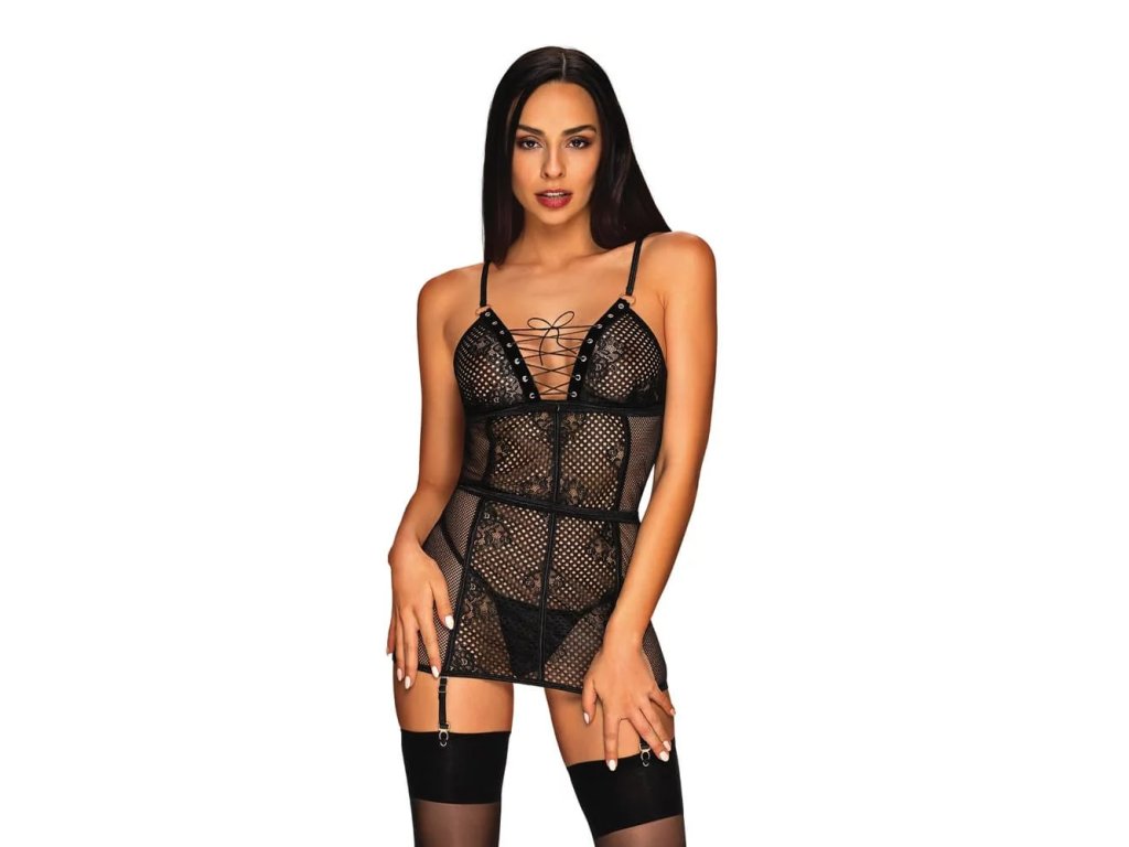 Košilka BasittaSíťovina je zárukou výjimečných zážitků! Navíc vám Obsessive nabízí žhavou kombinaci černé a krajkových ozdob - sexy, elegantní a trochu pikantní. Víme, že se vám bude líbit! V košilce Basitta chemise budete vypadat fenomenálně: veeelmi sexy prsa a nádherně zdůrazněná záda!