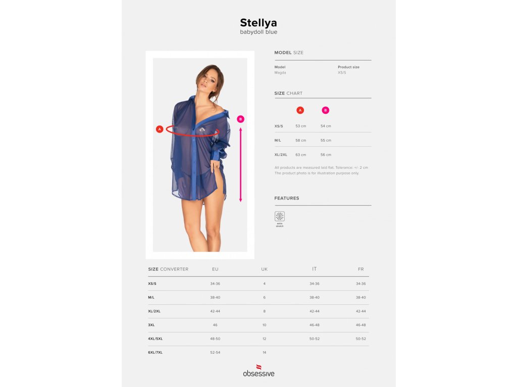 Sexy halenka Stellya babydoll modrá - Obsessive
