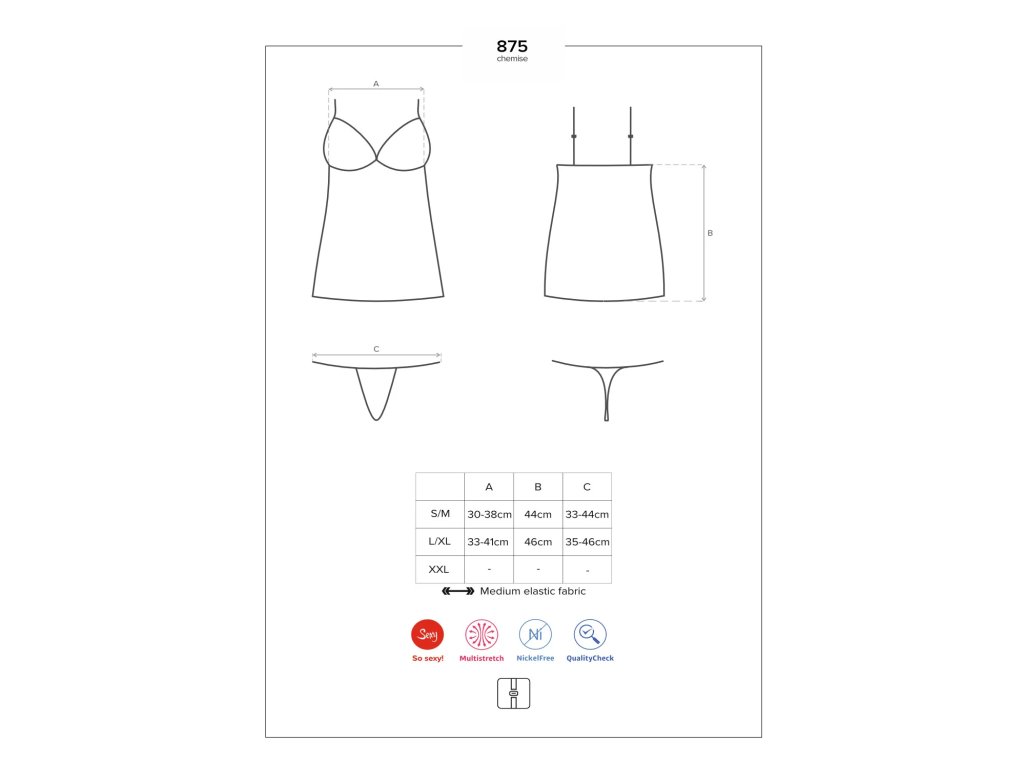 875-CHE-1Spusťte odpočítávání! V této sexy košilce se budete cítit opravdu úžasně. Průsvitná síťovina a svůdné pásky na vás budou vypadat naprosto úžasně! Jste připravena překvapit svého partnera tímto pikantním stylem a… prožít s ním jedinečnou noc!