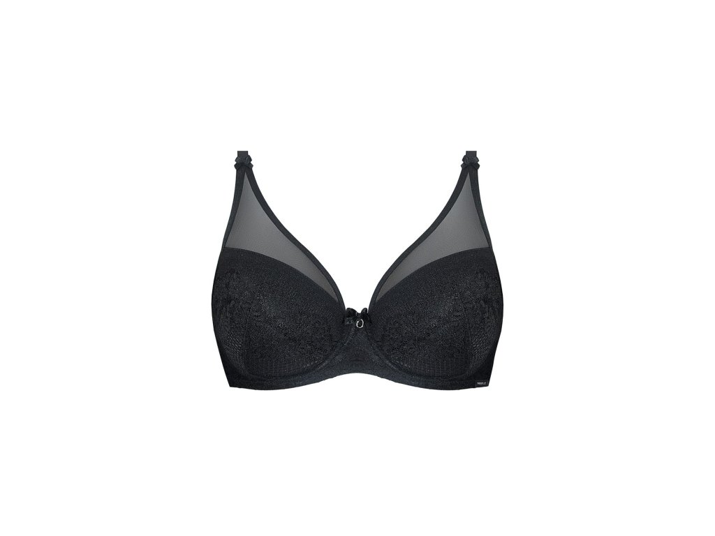 Dámská push-up podprsenka s kosticemi.Podprsenka je vyrobená z černé krajky a z jemné síťoviny. Plnější a hlubší košíčky pěkně obepínají poprsí. Model má vyjímatelné vycpávky. Ramínka, která jsou prodloužená tylem, je možné nastavit, ale nelze je odepnout. Obvod modelu bez bočních kostic je ušitý ze dvojité síťoviny.