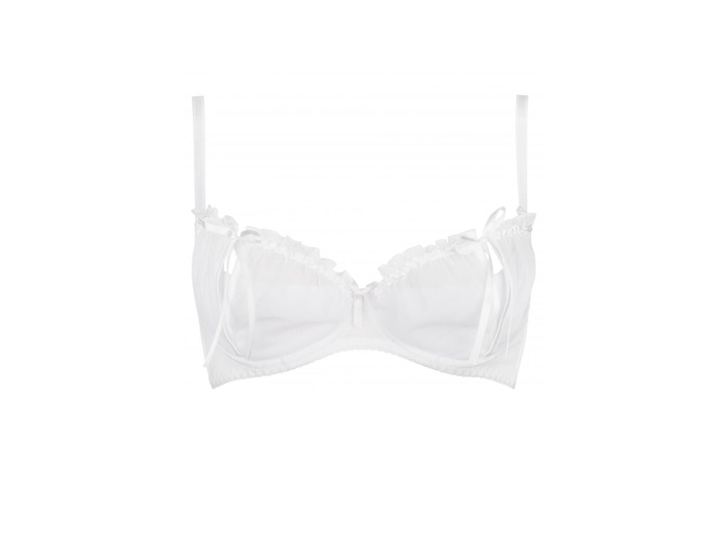 Smyslná sněhově bílá polopodprsenka Neige, která svádí svými nepřehlédnutelnými průstřihy košíčků.Polopodprsenka je vyrobená z jemné tylové síťovinky, která podtrhne a zdůrazní vaši ženskost a smyslnost. Na kráse dodávají modelu hravé mašličky. Model má boční kostice. Ramínka je možné nastavit, ale nelze je odepnout. Zapínání je na dva háčky s třístupňovou možností nastavení velikosti obvodu.Souprava vytvoříte společně s kalhotkami string a podvazkovým pásem Neige.Materiálové složení: 63 % polyamid, 11 % bavlna, 11 % polyester, 10 % polyuretan, 5 % elastan.
