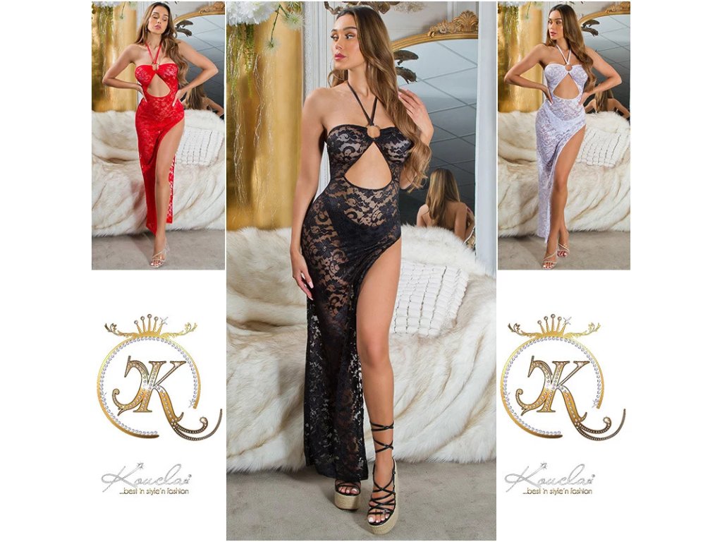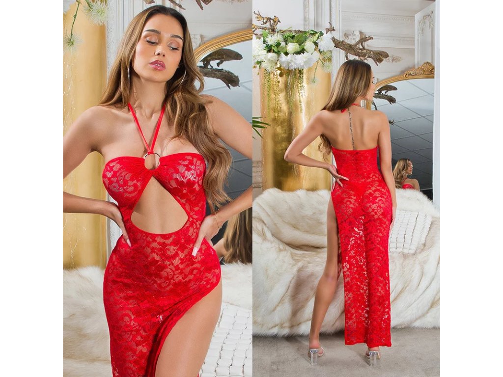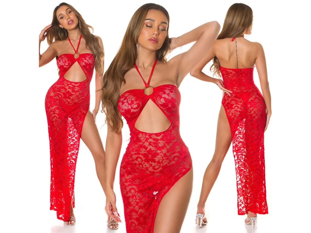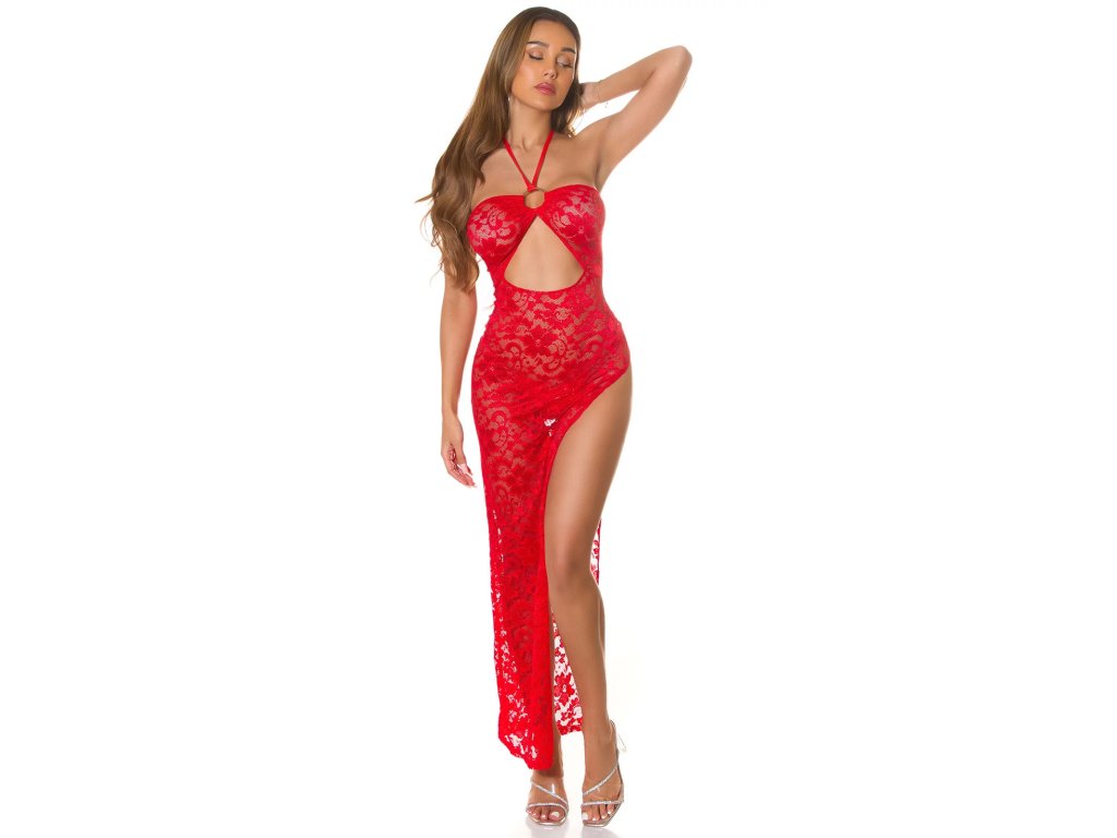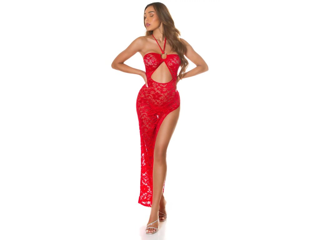 Dámské sexy krajkové šaty s výstřihem 0000K20862 Červená - Koucla