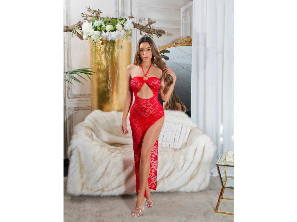 Dámské sexy krajkové šaty s výstřihem 0000K20862 Červená - KouclaMateriál složení: 90% polyester / 10% elastan
