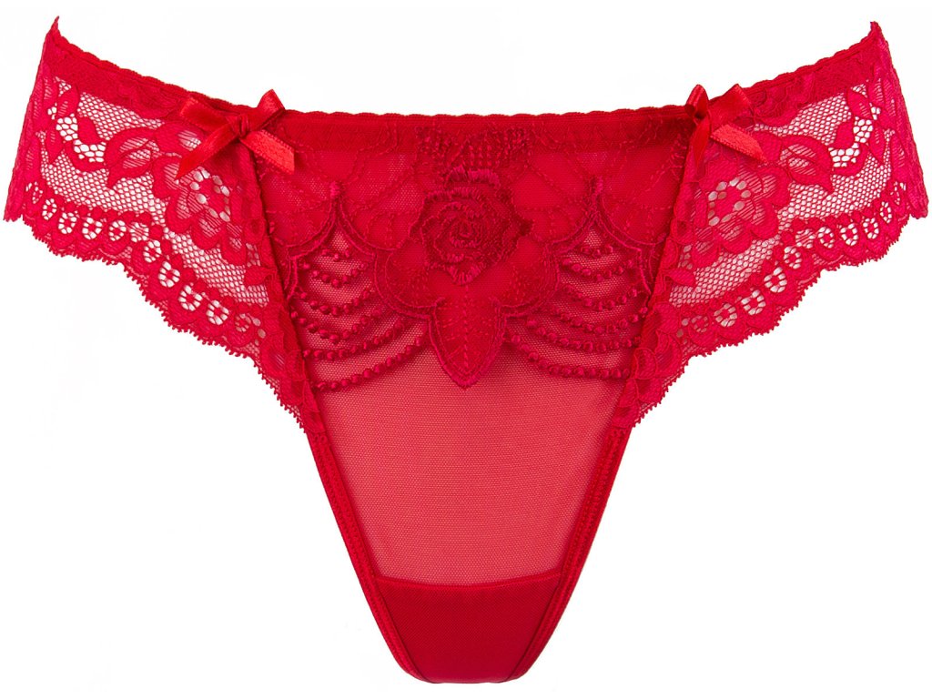 Brazilská tanga V-9698 zdobená bohatou výšivkou v kombinaci s plamenně červenou krajkou a průhledným tylem . Zdobí a doplňují polokorzet V- 9691.Složení látky: polyamid 68 %, polyester 21 %, elastan 8 %, bavlna 3 %