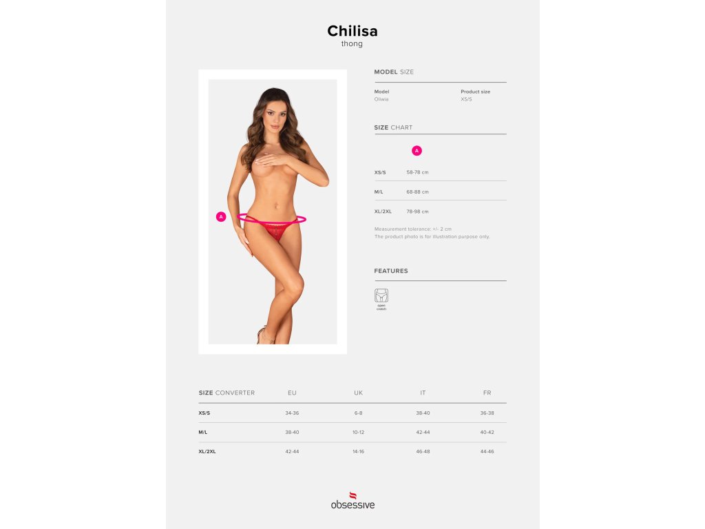 Tanga bez rozkroku ChilisaZaměřte na sebe veškerou pozornost díky těmto svůdným tangům s otevřeným rozkrokem. Díky červené barvě z vás nikdo nebude moci spustit oči a klasický střih dodá vašemu zadečku svůdný vzhled. Dodejte si sex-appeal, probuďte svou fantazii a vytvořte si nádherné okamžiky.
