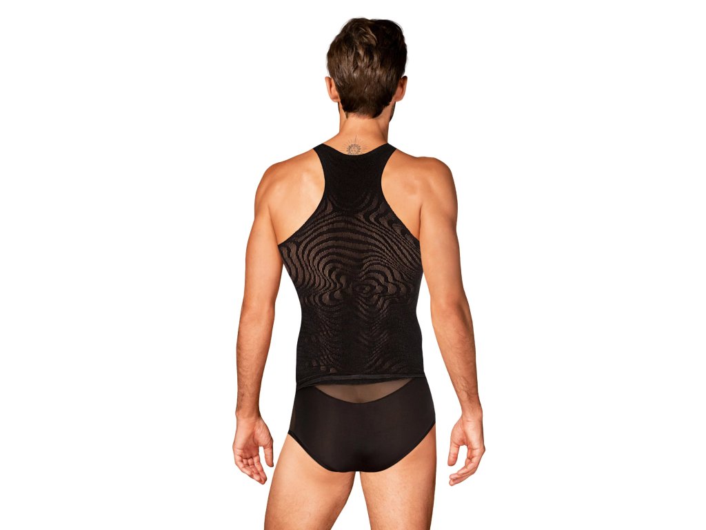 T103 tílkoSexy pánské tílko v klasické černé barvě. Plné pohodlí ve společnosti moderního střihu dokonale zdůrazní přednosti postavy. Mimořádně pružný úplet zajistí pohodlí a neomezený pohyb, proto neváhejte a nechte se jím doprovodit na příjemný večer v ložnici!