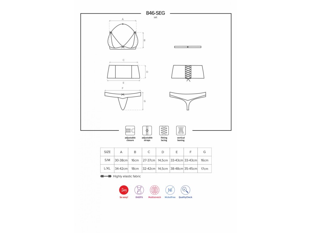 846-SEG-1Nádherný set se svůdným páskem čeká jen na vás! Okouzlující krajka ozdobí vaše tělo a vynese váš sex appeal do nedozírných výšek. Co teď? Je čas, abyste si udělali radost, oblečte si je a užijte si s vaším partnerem noc co noc, znovu a znovu!